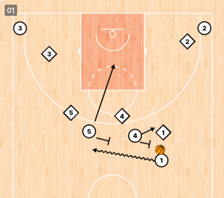 1枚目はリングに向かわず外へ広がるポップアウトが基本。外のシュートで脅威を作れる選手(リトルや金近)がここを担当しやすい。